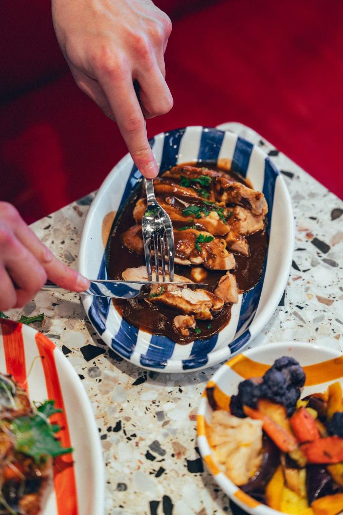 Une cuisine française et engagée. Cordon bleu maison, brochette XXL ou salade de saison, il y en a pour tous les goûts et toujours avec gourmandise.